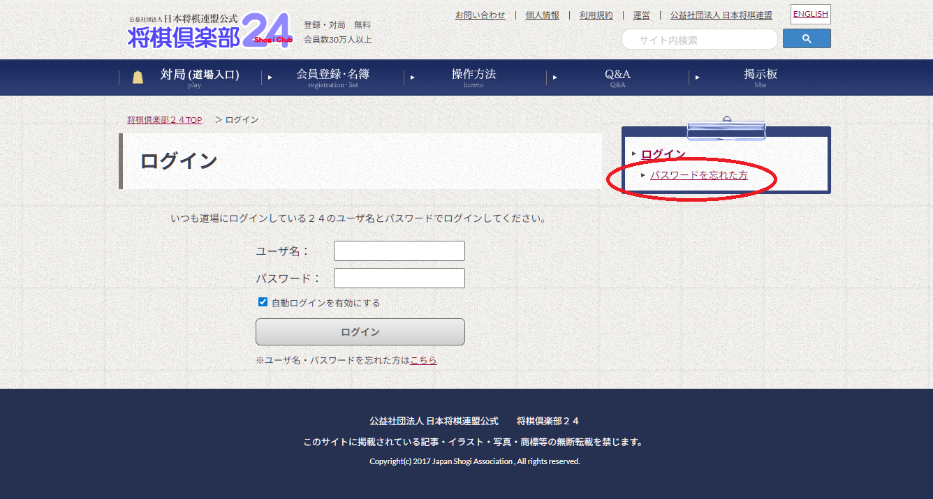 将棋倶楽部24でオンライン対局をされていたお客様は新しいパソコンで対局しようと思いましたがパスワードが思い出せません。